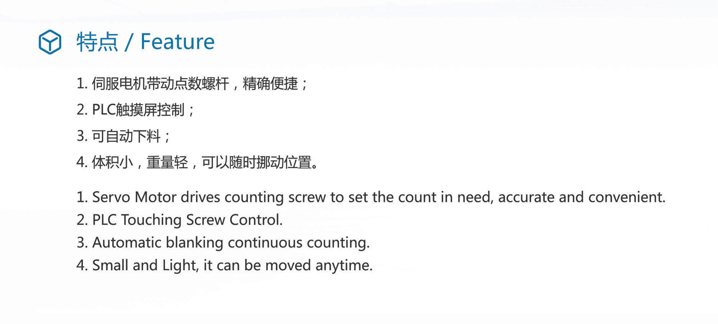 1. 伺服電機帶動點數(shù)螺桿,精確便捷;